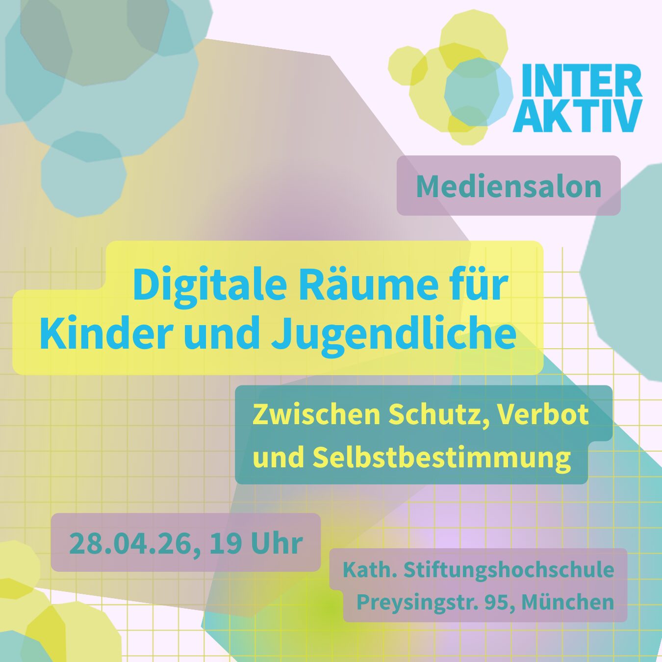Der aktuellen Diskussion um digitale Räume für Kinder und Jugendliche widmet sich der nächsten Interaktiv-Mediensalon. Der Fokus liegt insbesondere darauf, wie der schwierige Spagat zwischen Schutz, Verbot und Selbstbestimmung gelingen kann und welche praxistauglichen Lösungsansätze denkbar sind.