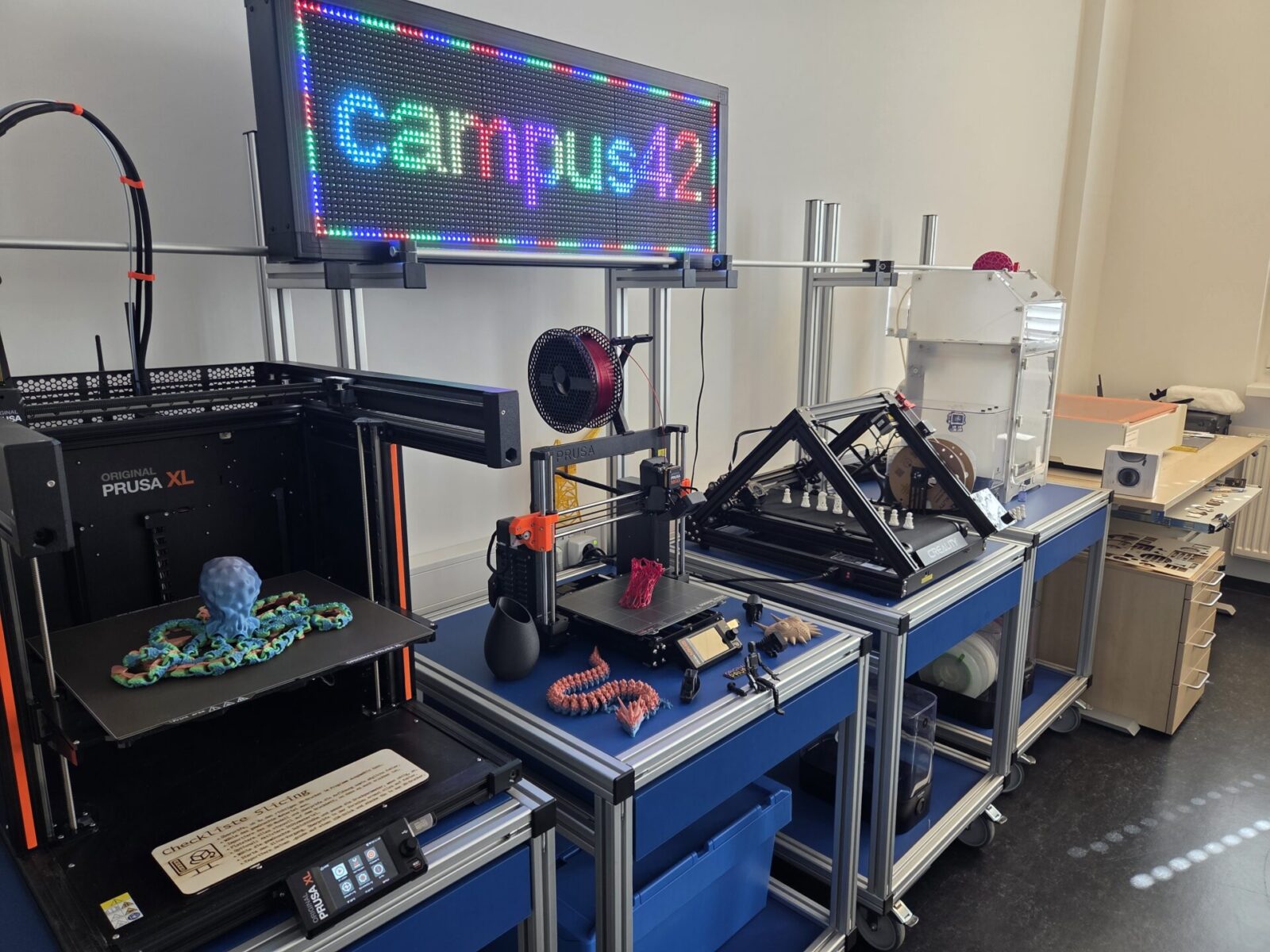 Der campus42in der Schertlinstraße 4 im Jungen Quartier Obersendling ist Münchens neuer Ort für zeitgemäße Medienbildung. Hier werden medienpädagogische Ideen nicht nur besprochen, sondern direkt ausprobiert: im Makerspace, bei aktiver Medienarbeit oder in anderen kreativen Formaten. Was funktioniert, wird weiterentwickelt und praxistauglich gemacht. Dabei geht es immer darum, Digitalisierung so zu gestalten, dass sie Bildungsgerechtigkeit, Chancengleichheit, Demokratiebildung, Partizipation, Nachhaltigkeit und Diversität stärkt.
