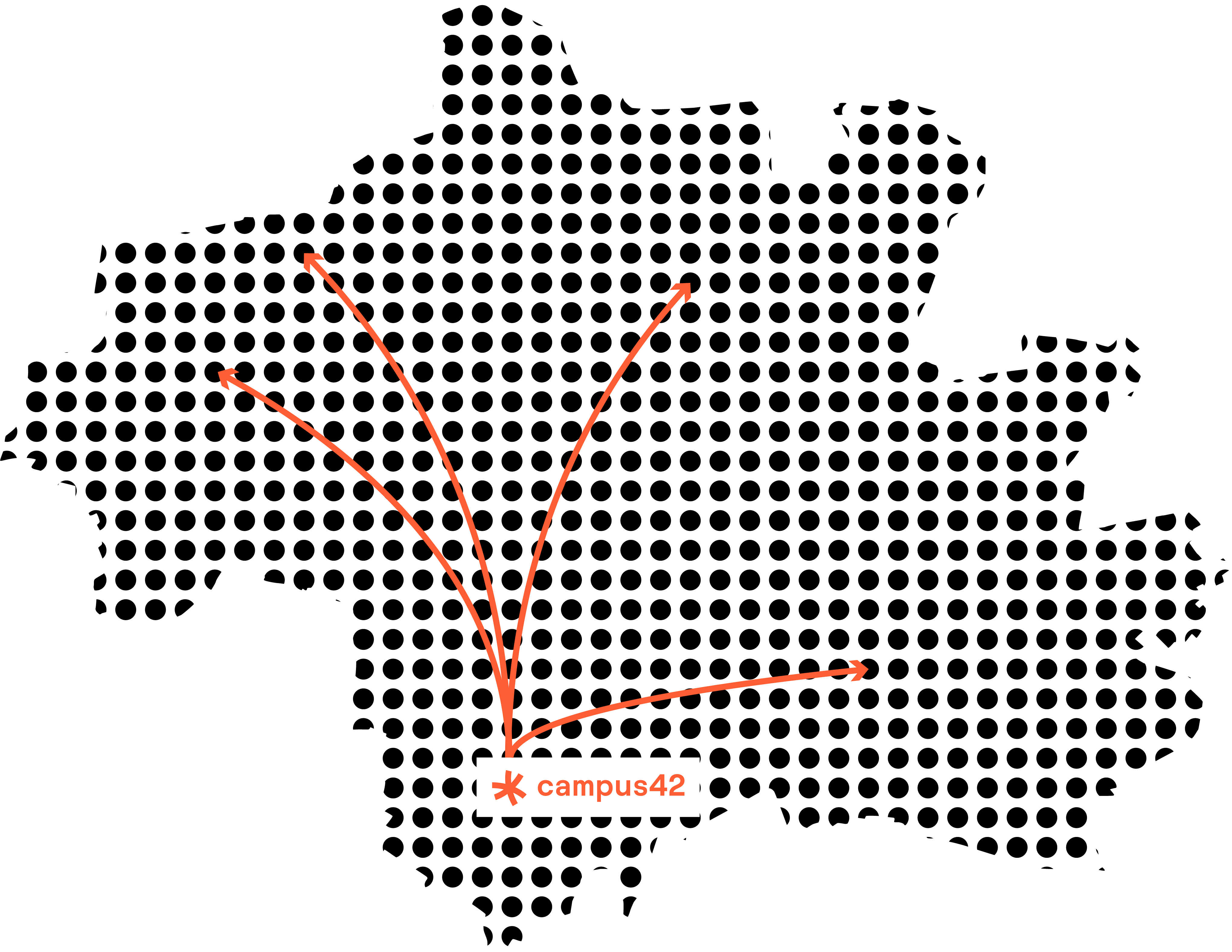 Lernen Sie den campus42 in München persönlich kennen! Entdecken Sie unsere kreativen Räume, probieren Sie innovative Medien und Technologien aus und tauschen Sie sich direkt mit unserem Team aus.